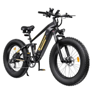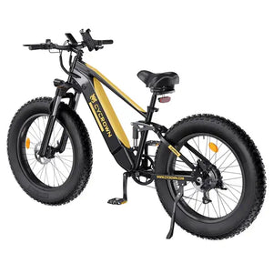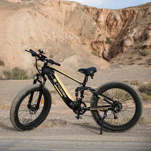 Bicicleta eléctrica para adultos CycUltra con horquilla de descenso con suspensión delantera de doble hombro ajustable y bloqueable y suspensión trasera.