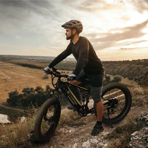 Frenos de disco hidráulicos y sistema de doble suspensión: Bicicleta eléctrica para adultos Cycrown Ultra con horquilla delantera de descenso con suspensión de doble hombro, bloqueable y ajustable, y suspensión trasera. Esta amortiguación reduce el daño articular durante la conducción. Ya sea en carreteras de montaña con baches o en calles urbanas llanas, ofrece una experiencia de conducción más segura y cómoda.