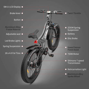 The Aostirmotor S18 is a fun and affordable electric mountain bike. It features a powerful 750W rear hub motor, paired with a mid-range 48V/15Ah removable battery with Samsung cells. This powerhouse is controlled by the 5-level Pedal Assist System (PAS) and a right-side half-twist throttle, giving you great control over your riding experience.