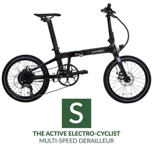 CARBO Model S is a slick, powerful and stylish multi-speed folding electric bike. As powerful as e-bikes twice the weight, Model S is designed to be the perfect workout, and urban companion. An affordable e-bike, equipped with plenty of features, Model S is on of the best folding e-bike on the market. With a Carbon Fiber Folding Frame, a Powerful 250W motor, and a 9 speed Derailleur, CARBO Model S is your ultimate workout and daily commuter and has all the features you need in a folding e-bike