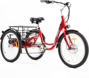 The MEIGI MG708 URBAN ELECTRIC TRICYCLE comes with a durable stainless steel frame and a 350-watt brushless motor. It comes with several premium components and simple parts for ease of riding. The MG708 is among the best electric bikes for sale today and is perfect for students, moms and dads going to work, and urban dwellers. The MEIGI MG708 Electric Bike is available in a beautiful red or blue finish.