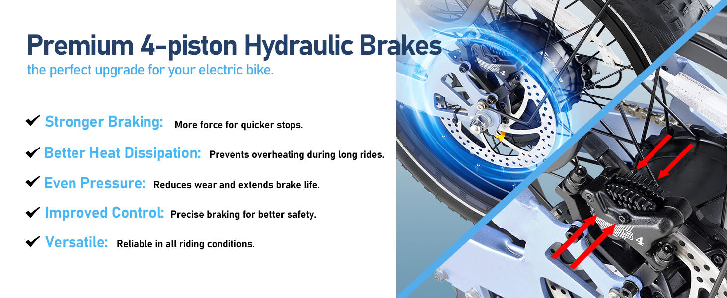 • Brakes: 4-piston hydraulic disc brakes, 180 mm rotors
