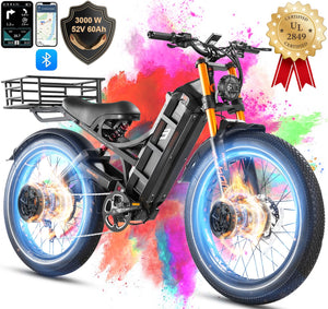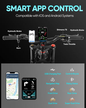 • All-Terrain Capability: Fat tires and full suspension for smooth rides on any surface.