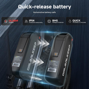 With a real-world range of 50–95 km per charge, Canadians can cover daily commutes or weekend rides with fewer recharges. The fat tire design ensures grip across snow, sand, gravel, and city streets, making it an all-terrain solution for Canada’s varied conditions. A removable lithium-ion battery allows safe indoor charging, while the full suspension system and hydraulic brakes increase rider comfort and control.