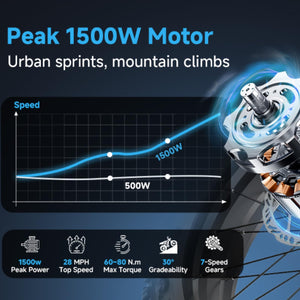 • 750W motor with 1500W peak power: delivers strong acceleration and hill-climbing ability.