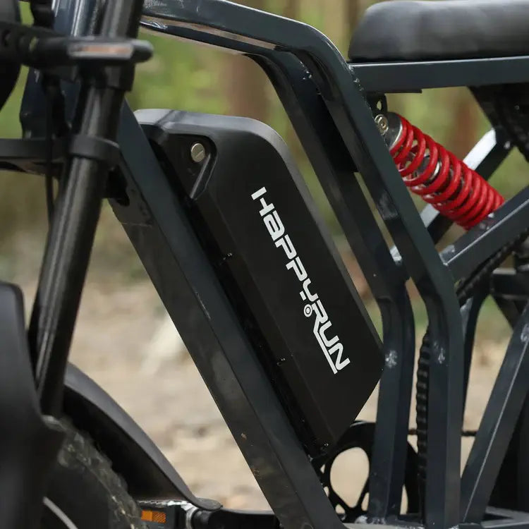The Happyrun Tank G60 Pro is a high-performance electric bike designed for thrill-seekers. Powered by a 1000W motor with a peak output of 2000W, it delivers impressive speed and acceleration, reaching up to 57 KPH.