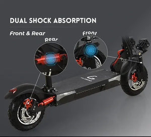 10'' air filled tire and double shock absorption make your riding more comfortable.