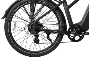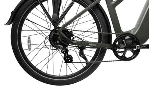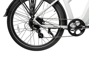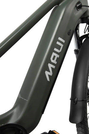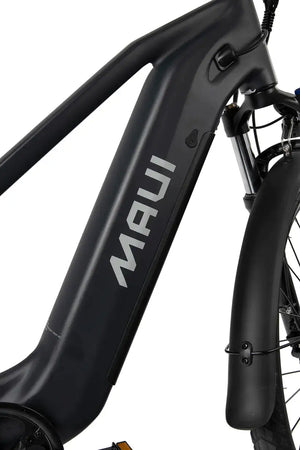 The Maui Hera is an electric city bike equipped with a 500W Bafang motor and Samsung battery integrated into the hybrid alloy frame allowing for a natural and comfortable riding posture for any type of ride. Equipped with Tektro hydraulic disc brakes, 27.5 inch alloy wheels, 38mm wide tires and a SunTour front fork, the HERA allows for a comfortable ride on the road. Its rear rack, mudguards and safety lights make it the ideal bike for long rides!