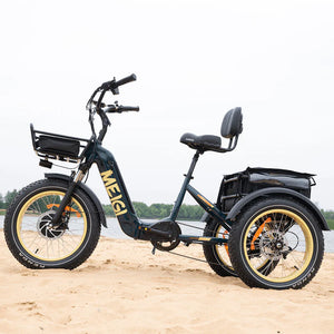 The Silverado-HD Folding Fat Tire Electric Tricycle stands out as a unique creation, offering an exceptional blend of power and convenience. There’s virtually nothing this tricycle cannot handle. With its robust motor and battery combination, comfortable spacious seat, and the added benefit of a removable battery, it reigns as the premier choice for both on-road and off-road trike experiences.