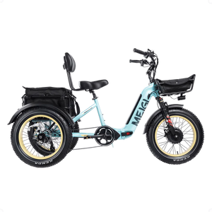 The tricycle is designed with the road challenges of commuting and long-distance travel in mind. Equipped with multiple shock absorbs, MOZO lockable hydraulic suspension front forks and seatpost suspension, allowing the rider to be fully cushioned on bumpy roads. With 20 x 4-inch fat tires, it can traverse all sorts of terrain, including mountains, snow, beach, rocky roads, and even urban jungles.