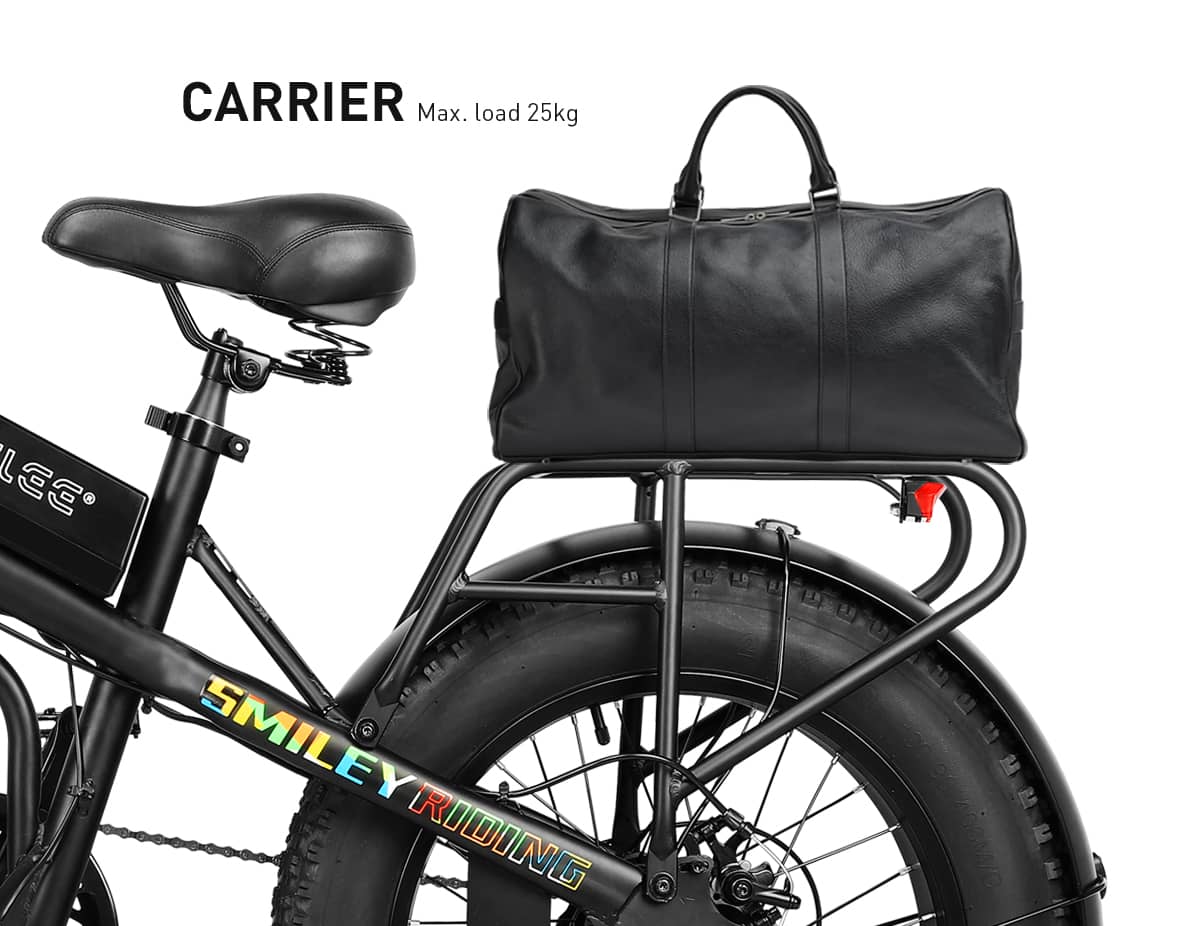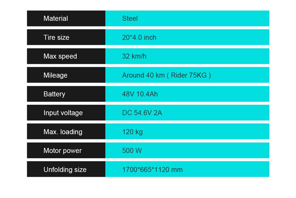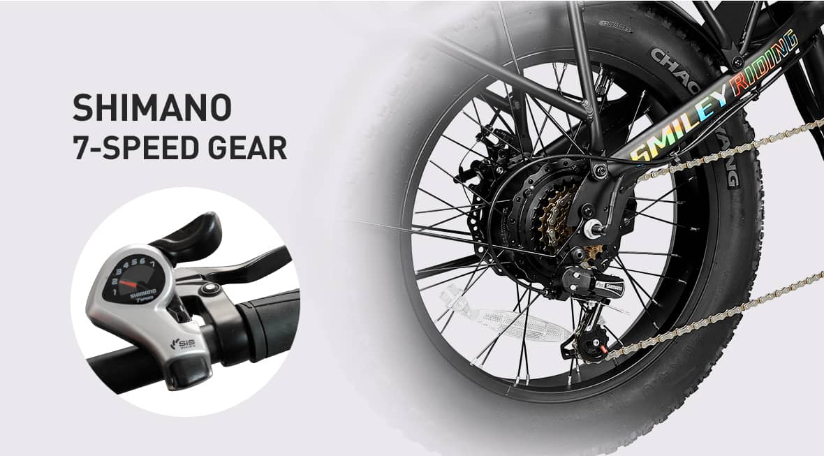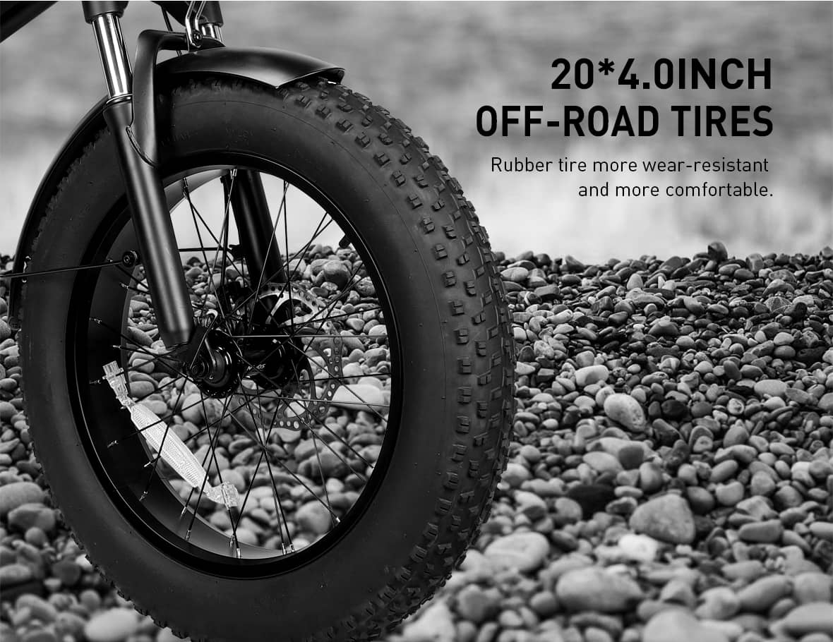 The 20-inch fat tire electric bike is perfect for adventurous off-road enthusiasts seeking thrilling rides on rugged terrain. Its oversized tires offer superior grip and stability, while the sleek, eye-catching design ensures you stand out on any trail. The bike features a lightweight, durable frame that’s easy to transport. With a high-capacity battery and a powerful 500W motor, long-distance travel becomes effortless. Shimano adjustable gears allow you to seamlessly adapt to different riding conditions, and the bright front and rear lights ensure visibility and safety in low-light settings. Embrace the thrill of the outdoors and embark on joyful adventures with this exceptional electric bike!