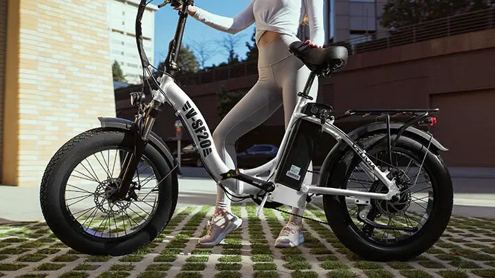 Experience effortless riding with the SF20H Upgraded Folding Electric Bike. Thumb throttle ensures easy operation, while the fat tires provide exceptional balance and suspension, delivering a smooth and comfortable ride. Plus, the convenient folding Step-Thru frame allows for easy mounting and dismounting, making every journey a breeze. When you're not using it, the bike conveniently folds away for simple storage and portability.